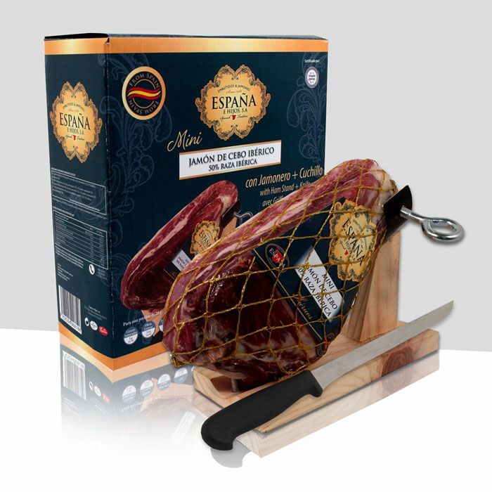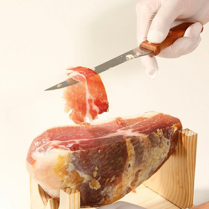 他の画像を見る スペインクラブ ミニ・ハモン・イベリコ(台・ナイフ付) 迫力の生ハム約950gのボリューム! スライスナイフ付き スペインクラブ ミニ・ハモン・イベリコ(台・ナイフ付) 販売価格 ¥ 24,090 税込 1994年創業のスペイン食文化の発信拠点「スペインクラブ」で大好評の長期熟成されたイベリコ豚の生ハム。その切りたてを自宅で楽しめる専用台とナイフが付いたスペシャルセットです。約950gのかたまりは迫力満点! ホームパーティーが盛り上がること間違いなしです。世界一と名高いスペイン原産のイベリコ豚を24~36か月間熟成。特有の深みや脂の甘みを堪能できます。ワインのお供はもちろん、サラダに盛り付けたりと必要な分だけスライスして切りたてをお楽しみいただけます。 詳細を見る お気に入りに登録する