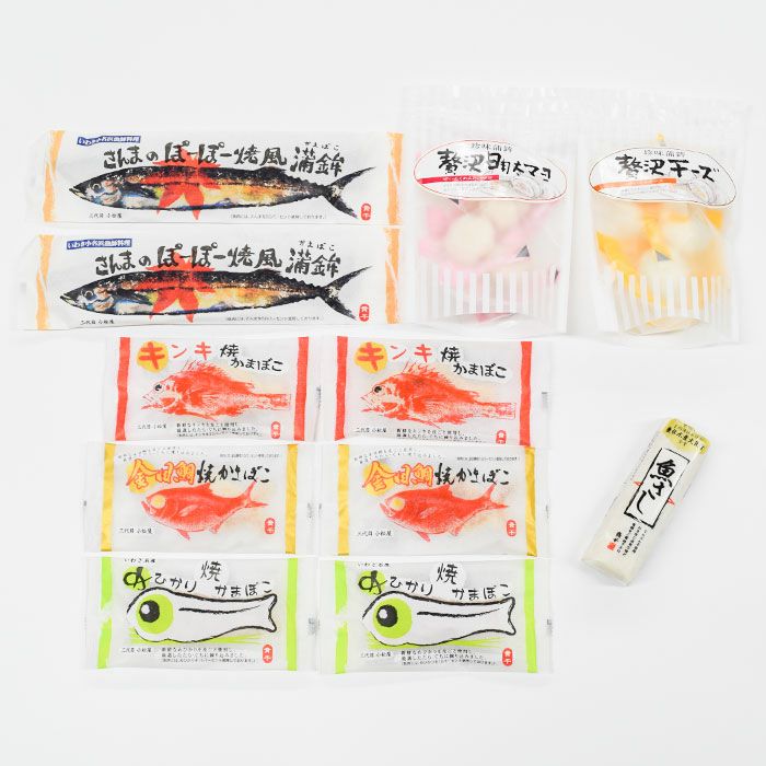 他の画像を見る 貴千のかまぼこセット 11点セット 農林水産大臣賞受賞、素材の旨みが際立つかまぼこ 貴千のかまぼこセット 11点セット 販売価格 ¥ 5,140 税込 澱粉を使用していないのでなめらかでモチっとした食感が特徴の魚さし、ソフトなかまぼこ生地にチーズ・明太マヨを包み込んだ一口大の贅沢チーズ・贅沢明太マヨ、いわきの郷土料理「さんまのぽーぽー焼き」をモチーフにしたさんまのぽーぽー焼風蒲鉾、かまぼこの身に金目鯛・めひかり・キンキを練り込んだ焼かまぼこのセットです。それぞれの素材の味を存分に堪能できます。魚さしは全国蒲鉾品評会にて「第72回農林水産大臣賞」を受賞しました。 詳細を見る お気に入りに登録する