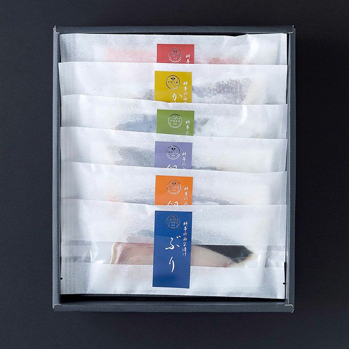 他の画像を見る 【下鴨茶寮】料亭の西京漬け(6切) 料亭の味を自宅で、品の良い甘みと香りの西京漬け 【下鴨茶寮】料亭の西京漬け(6切) 販売価格 ¥ 7,610 税込 海から遠く離れた京都で、魚の保存性を高め、美味しくいただくために生まれた西京漬け。麹が多く塩分が少ないため、品の良い甘みと香りを醸し出す西京白味噌を使用した下鴨茶寮特製の西京味噌漬けです。味噌との相性、味、香り、食感を吟味し、厳選した 銀鮭・からすかれい・銀鱈・金目鯛・さわら・ぶりの6種を、魚介本来の持ち味を生かし風味豊かに仕上げました。深みのある贅沢な魚介をご賞味くださいませ。目上の方への贈り物にもおすすめな専用化粧箱入りです。贈答用としてはもちろん、ご自宅用にも喜んでいただける「料亭の西京漬け」をぜひご賞味ください。 詳細を見る お気に入りに登録する