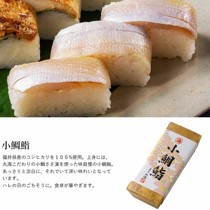 他の画像を見る 【福井】焼さば鮨&小鯛鮨セット サバと小鯛の旨味を引き出した端正な押し寿司 焼さば鮨&小鯛鮨セット 販売価格 ¥ 4,500 税込 レンコ鯛の繊細な旨みを引き出した職人技の『小鯛ささ漬』と、肉厚で脂がのったサバを香ばしく仕上げた『焼きサバ』。若狭小浜の名産を押し寿司に。酢飯には福井県産のコシヒカリを使い、ネタとの間に潜ませたガリが後味を引き締める。貫禄のおいしさだ。 詳細を見る お気に入りに登録する