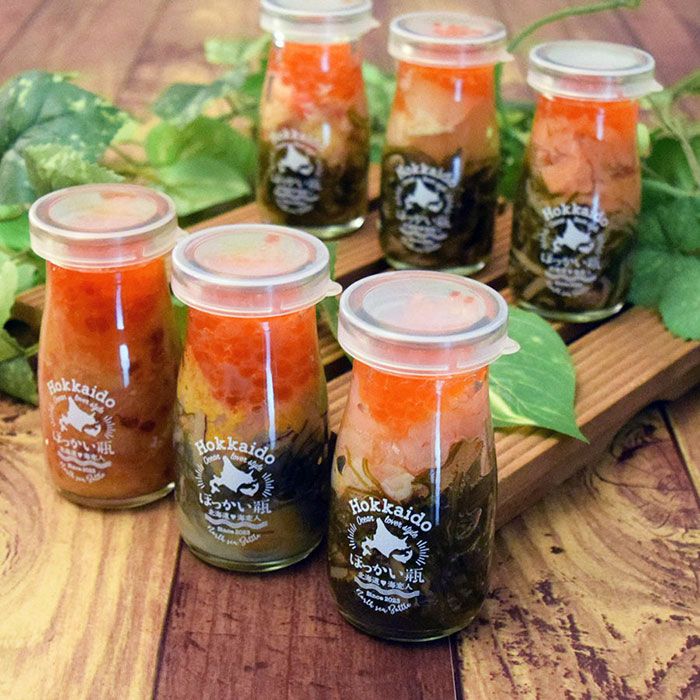 他の画像を見る ほっかい瓶6種セット 瓶に北海道のおいしさをぎっしり詰め込みました ほっかい瓶6種セット 販売価格 ¥ 11,000 税込 ベースは、甘さを抑えた数の子の松前漬け。そこに、根室沖で獲れたタラバガニ、糀で漬けた石狩産サクラマス、宗谷産ホタテ貝、北海道産のぼたん海老、ボイルうにをそれぞれ加えて6種の瓶に詰め込んだ豪華海鮮瓶セット。いずれもイクラ醤油漬けがたっぷり入り、目も舌も大満足! 詳細を見る お気に入りに登録する
