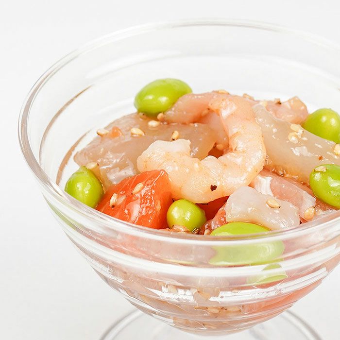 他の画像を見る お刺身カクテル詰め合わせ 大人オシャレ感覚を満喫 スプーンで楽しむ「新感覚」お刺身 お刺身カクテル詰め合わせ 販売価格 ¥ 4,480 税込 いろんな海鮮食材のお刺身を「うま塩ガーリックオイル」と「昆布ジュレ」でまとめました。エビのプリプリだったり、ツブ貝のコリコリだったりイカのモチモチだったり色々な食感が同時にやってきてお口の中が楽しくなります。とろける昆布〆は4種類の軽く締めたお刺身に日高産根昆布から作った「昆布ジュレ」をたっぷりかけました。とろっとろの「昆布ジュレ」と昆布締め刺身のハーモニーをお楽しみください。 詳細を見る お気に入りに登録する