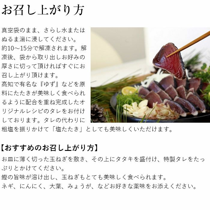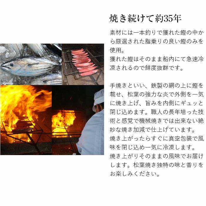 他の画像を見る 松たたき 小分けセット 桂浜の松葉を火種にしたむっちりしっとりな鰹のタタキ 松たたき 小分けセット 販売価格 ¥ 5,680 税込 一本釣りで獲ったカツオの中から脂のりのよいものを厳選。船内で急速冷凍し、桂浜の松葉を火種に、職人が豪快に手焼きで仕上げている。解凍してもドリップ感はなく、赤身はむっちり。凝縮した旨みと松葉の香りが交錯する罪な旨さだ。ゆずを使ったタレと室戸岬の海塩でどうぞ。 詳細を見る お気に入りに登録する