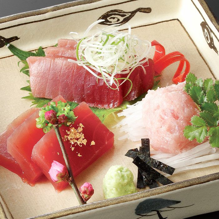 他の画像を見る だてまぐろ湯霜漬け詰合せ 宇和海産本まぐろ、職人のこだわりが生んだ極上の味 だてまぐろ湯霜漬け詰合せ 販売価格 ¥ 12,300 税込 『だてまぐろ』は、「最高の養殖環境」と「職人のこだわり」 が創り上げた、宇和海産本まぐろのブランドです。まぐろ通にはもちろん、養殖本まぐろに馴染みのない方にこそおすすめです。 『だてまぐろ』は、初代・宇和島藩主の伊達秀宗に因んで付けられた名前です。「伊達」という言葉には、伊達家の生き様を象徴する「豪華」「魅力的」「粋」といった意味があり、そんな伊達の心意気を品質に込めたのが『だてまぐろ』です。湯霜漬けとは、柵を一度熱湯にくぐらせて表面に熱を加えることで、たれの味を染み込ませやすくさせる調理方法です。程よく染み込んだしょうゆだれのまろやかさが、素材の旨味を引き立たせます。赤身は緻密な身質を誇り、雅やかな酸味ときめ細かな味わいに満ちています。中トロは、単に脂がのっているだけではなく、そこに上品さが伴いいつまでも味わっていたいほどの旨みが口いっぱいに広がります。赤身と中トロを取り交ぜた切落しは、食感の違いと口の中でとろけるようなコクをぜひお楽しみください。お刺身やお寿司はもちろん、脂がさらりとしているので、カルパッチョや卵黄をのっけたアボカドユッケもおすすめです。養殖の常識を覆す旨みと脂のきめの細かさ、身質の美しさをご堪能ください。 詳細を見る お気に入りに登録する