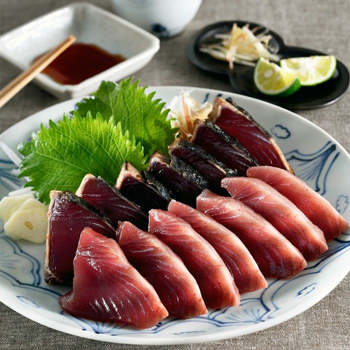 この身質とツヤをご覧あれ。遠洋漁船で一本釣りした旬の戻りカツオを生きたまま急速冷凍することで生に限りなく近い鮮度を誇る。「トロかつお」は、ねっとりとした舌触りでさわやかさもあり、「タタキ」は炙りの香りも旨みも品よし。良質な脂と職人仕事のなせる技にあっぱれ!
