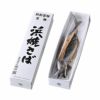 越前若狭名物、浜焼さばは、串刺しの特大サイズのさばを遠赤外線でじっくり丹念に焼き上げ、本来の旨みを引き出した伝統の味。程よい脂とふっくらとした身がたまらない。大根おろしを添えて、ご飯なら生姜醤油、お酒のお供にはポン酢でどうぞ。箱入りで贈答用としても嬉しく、DHAも豊富に含まれているので、健康志向の方にも年齢問わず愛される逸品だ。