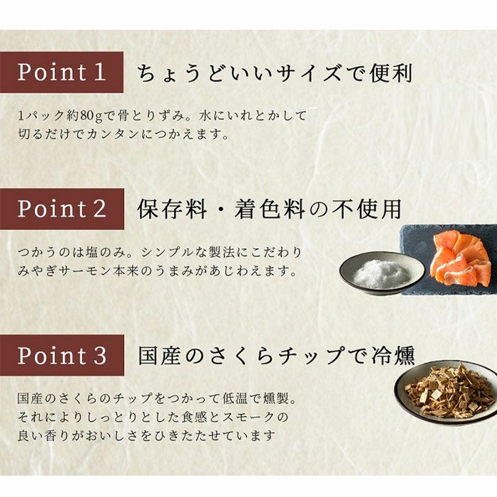 他の画像を見る みやぎサーモン食べ比べセット とろける身質がたまらない、漬けとスモークの2種セット みやぎサーモン食べ比べセット 販売価格 ¥ 5,500 税込 活〆により高い鮮度を誇る、養殖銀ザケの最高級ブランド「みやぎサーモン」。とろけるような身質はそのままに、桜チップで低温燻製したスモークサーモンは芳醇かつ生食感が楽しめ、自家製ダレが絡む漬けはご飯が進む一品に。スライスの厚みも程よく食べ応え抜群。 詳細を見る お気に入りに登録する
