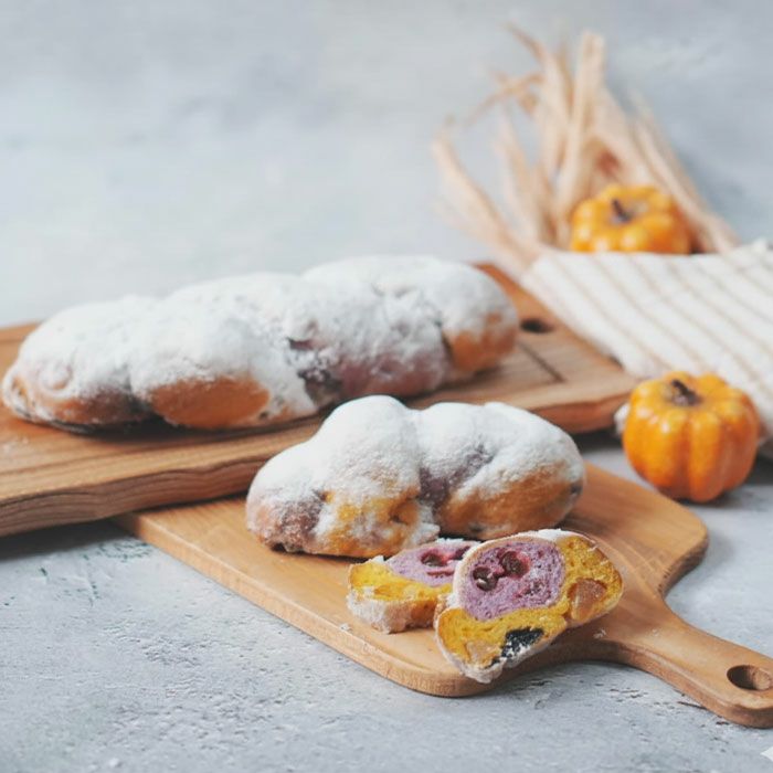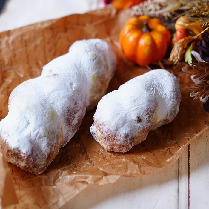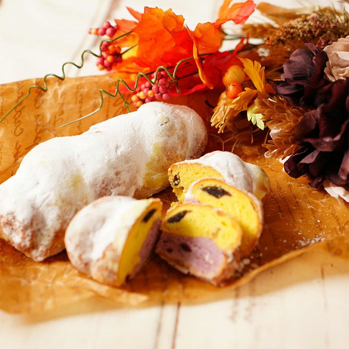 他の画像を見る 幸せのシュトーレン(ハロウィンシュトーレン)大サイズ 手軽に楽しめるシュトーレン、秋冬の香り広がる逸品 幸せのシュトーレン(ハロウィンシュトーレン)小サイズ 販売価格 ¥ 4,100 税込 2色のツイスト仕立てが楽しいハロウィンシュトーレン。北海道産かぼちゃと鹿児島産紫さつま芋を使用し、カラフルで食物繊維たっぷり。リンゴとクランベリー、ブラックココアのローマジパンが生地の中に神出鬼没。どこを切っても2色模様が現れ、切る場所ごとに異なる表情を楽しめます。黄色から、紫から、一度にパクリでもOK。愛知県産小麦「ゆめあかり」と豊橋・中央製乳の「中央バター」を使用し、昔ながらのチャーン製法が深いコクを生み出します。時間をかけて熟成することで旨みが増し、待つほどにおいしく育つ一品。軽くトーストしてバターやクリームチーズを添えるのもおすすめ。贈り物にも、自分へのご褒美にもぴったりな幸せのシュトーレンです。 詳細を見る お気に入りに登録する