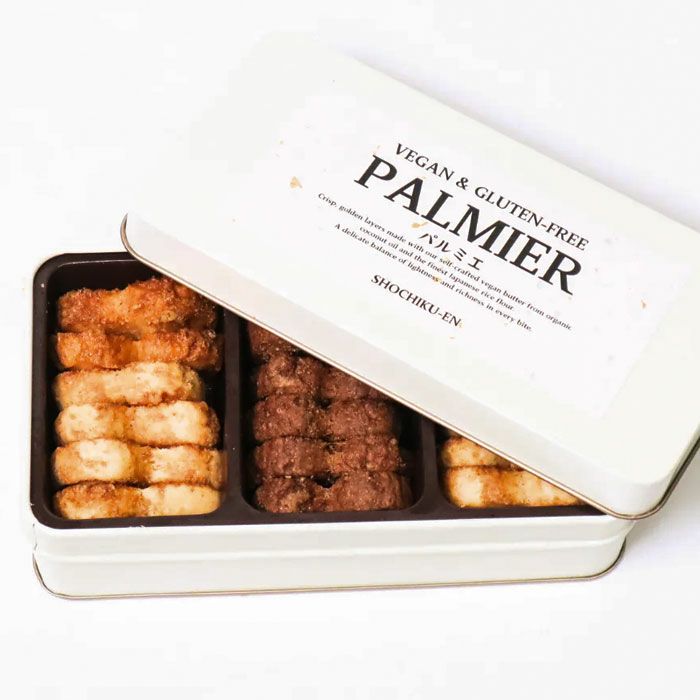 他の画像を見る パルミエ缶(18枚入) サクッと軽やか、米粉100%の特別なパルミエパイ菓子 パルミエ缶(18枚入) 販売価格 ¥ 5,840 税込 アレルギーをお持ちの方にも、素材にこだわる方にも安心してお楽しみいただけるよう、サクッと軽やかで驚くほど香ばしい味わいを実現しました。日本でも珍しい国産米粉100%のグルテンフリーパルミエは、小麦・卵・乳を一切使用せず、国産米粉だけで焼き上げた特別な一品で、やさしい甘さとパリッとした軽やかな食感が特徴です。さらに、マーガリンやバターの代わりに香り豊かな有機ココナッツオイルを使用し、パーム油不使用・添加物不使用にこだわり、保存料・着色料・香料などの添加物は一切加えていないため、毎日のおやつとしても大切な方への贈り物としても安心してお召し上がりいただけます。シンプルでありながら素材そのものの風味をしっかりと感じられる味わいは、つい手が止まらなくなるおいしさで、紅茶やコーヒーとの相性も抜群です。18枚入りをシンプルで上品なデザインの缶に詰めてお届けするので、ギフトにも喜ばれます。 詳細を見る お気に入りに登録する