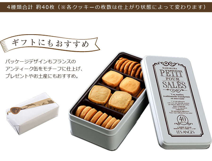 ○名称:クッキー ○内容量:1缶(170g)×2缶 ■1缶の内容量↓ 4種類合計 約40枚(バジル、ドライトマト&オレガノ、ゴーダチーズ、レッドチェダーチーズの4種類) ※枚数は仕上がり状態で前後します。 ○原材料名:小麦粉(国内製造)、乳等を主要原料とする食品、粉糖、アーモンド、チェダーチーズ、クリーム(乳製品)、セミドライトマト、ゴーダチーズ、鶏卵、バジルソース、食塩、パプリカ、バジル、オレガノ/乳化剤、香料、酸化防止剤(チャ抽出物、V.E)、(一部に小麦・卵・乳成分・アーモンド・大豆を含む) ○配送形態:常温(宅配BOX・置配不可) ○保存方法:常温 ○賞味期限:製造より45日 ○熨斗:可 ○名入れ:可 ○包装:可(但し個別包装は不可) ○備考:- ○製造者:【鎌倉レ・ザンジュ】神奈川県鎌倉市御成町13-35 <おすすめ用途> 自宅用 手土産 お歳暮 お年賀 お中元 敬老の日 ギフト プレゼント 贈り物 お礼 お返し ご挨拶 結婚祝 内祝い 誕生日 卒業 <贈る相手> 女性 男性 友人 家族 祖母 祖父 孫