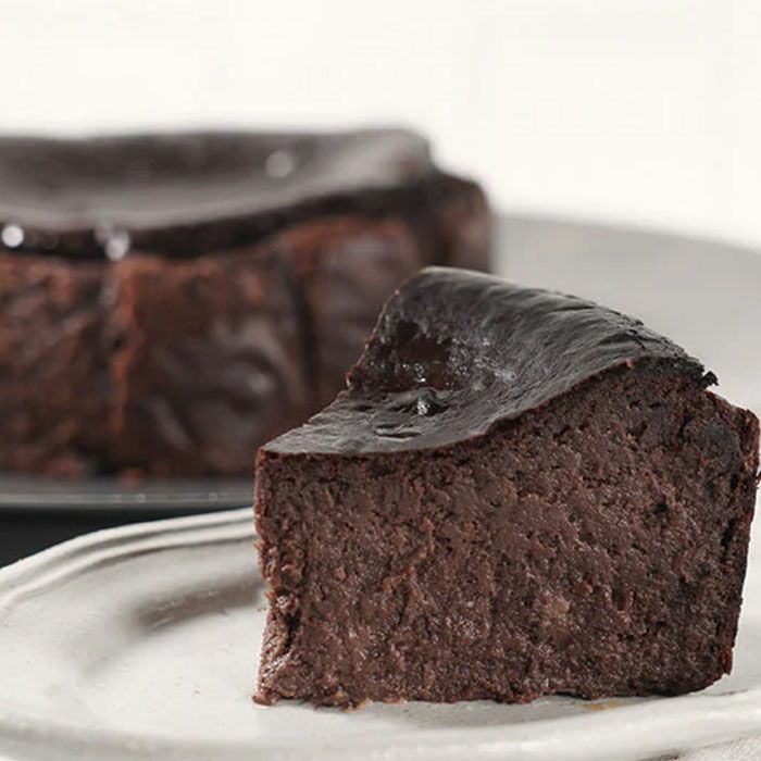 美味しい季節のフルーツと、原材料のこだわりがコンセプトのスイーツ専門店が作るバスクチーズケーキ(ショコラ)。バスクチーズケーキは、スペインバスク地方の名物料理で、地元のバルにはワインを片手にチーズケーキを食する文化が根づいています。熟成された赤ワインとの相性は抜群。チーズケーキの真ん中が凹んでいるのは、チーズ以外の混ぜものや膨らませる材料をほとんど使っておらずチーズの含有率が高いから。「チーズの味に自信あり、美味しいから食べてみて!」の自信の現れです。バスクチーズケーキの特徴である外側はベイクされたカラメル感溢れる仕上がりなのに、中はしっとり濃厚なレアチーズ。チーズケーキ職人の技が光る逸品です。チーズ本来の味と職人技で調理された味の変化を楽しんでいただくことができるケーキをお届けします。