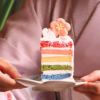小麦、乳や卵を使用せず、アレルギーを持つ人々でも安心して楽しめるように、全ての原材料から製造場所まで、ヴィーガンかつグルテンフリー専用の環境で作られており、途中で混入のリスクを心配する必要はありません。大人たちは子供たちに安心して与えることができます。化学着色料を使用しないため、ケーキの各層は自然の植物の特性に合わせて調整する必要があります。そのため、各層を個別に焼き上げ、最終的に組み合わせます。これによって、各層には独自の風味があり、じっくり味わうとそれぞれの素材の特別な香りが楽しめます。
