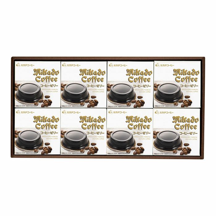 他の画像を見る ミカド珈琲 コーヒーゼリー 8個入 本格的な味わいは、まさに「食べるコーヒー」 ミカド珈琲 コーヒーゼリー 8個入 販売価格 ¥ 4,350 税込 ミカド珈琲の焙煎士が、ゼリー用にブレンドした生豆を深煎り焙煎。この焙煎が、ゼリーのコク・旨み・スッキリした苦味を引き出します。しっかりとしたコーヒーの清涼感ある苦味とコク、口溶けのよい舌触りがクセになります。みずみずしく、口どけのよい食感の中に、芳醇なコーヒーの香りと旨みがたっぷり凝縮されている本格的な味わいは、まさに「食べるコーヒー」です。 詳細を見る お気に入りに登録する