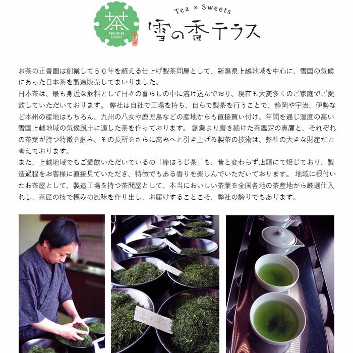 他の画像を見る 雪の香プリン6個セット 雪室熟成の茶葉をたっぷり使ったなめらかプリン 雪の香プリン6個セット 販売価格 ¥ 4,280 税込 なんてったって老舗のお茶屋が作るプリン。上越産素材で仕立てたまろやかな口当たりとともに、雪室で熟成させた銘茶の茶葉が上品に香り立つ。ほろ苦い抹茶、香ばしさの奥に玄米の甘みを感じる棒ほうじ茶、高貴な和紅茶、やさしい味わいのプレーンがセットに。 詳細を見る お気に入りに登録する