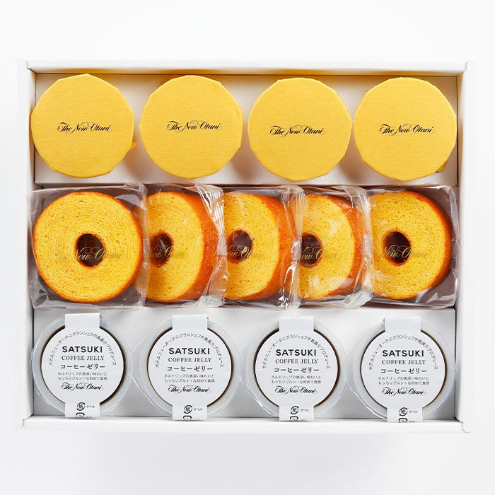 他の画像を見る ホテルニューオータニ スイーツアソート 贅沢マンゴープリン&バウムクーヘン&コーヒーゼリーの詰合せ ホテルニューオータニ スイーツアソート 販売価格 ¥ 6,800 税込 ホテルニューオータニ総料理長 中島眞介が監修した贅沢な3種セット。アルフォンソマンゴーの濃厚な味わいと爽やかな香りが特徴のマンゴープリンは、国内製造の牛乳とマンゴーピューレを使用し、滑らかな口当たりに仕上げています。長崎産のビタミンE豊富な太陽卵を使い、じっくりと焼き上げたバウムクーヘンは、アーモンドの風味とバニラの香りがふんわり広がります。さらに、ネルドリップで丁寧に抽出したオリジナルブレンドのコーヒーを使ったコーヒーゼリーは、もっちりとした独特の食感が楽しめ、甘さ控えめで後味すっきり。厳選素材と職人技が織りなす味わいを手軽に堪能できる逸品です。 詳細を見る お気に入りに登録する