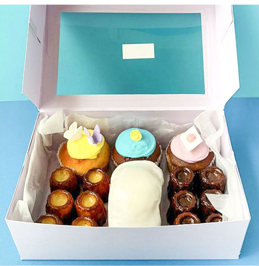 大阪の焼き菓子店発のギフトBOXには、人気のカヌレと国産レモン果汁を使ったしっとりレモンケーキ、華やかなカップケーキが集結。とくにカヌレは看板商品で、外はカリッと中はもっちりの食感が魅力だ。いずれも厳選した素材のよさと繊細な手仕事が生きている。