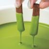 みかさ(どらやき)の皮を短冊に切ってオーブンで2度焼きしてラスクにし、宇治抹茶のチョコレートをしみ込ませました。ほろ苦い抹茶の香りとサクッと芳ばしい食感が特徴の手間暇かけた抹茶ラスクです。抹茶は京都丸久小山園の宇治抹茶をふんだんに使っています。