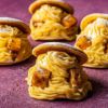 紅はるかの上品な甘さを存分に楽しめる、モンブラン仕立ての生どら焼きです。しっとりふわふわの生地で、なめらかなお芋クリームと丁寧に炊き上げた芋餡をやさしくサンド。どちらも紅はるからしい自然な甘さが広がり、絶妙なバランスで口の中にとろけます。さらに、仕上げにはモンブランクリームをたっぷりと贅沢に絞り、見た目にも華やかな一品に。もちもちでふんわりとしたどら焼きの生地と、濃厚なお芋の風味が重なり合う、まさにご褒美スイーツです。自分へのご褒美にはもちろん、大切な方への手土産にもぴったりです。