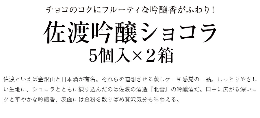 ○名称:洋菓子 ○内容量:ショコラケーキ5個入り×2箱 ○原材料名:砂糖(国内製造)、小麦粉、液全卵、チョコレート、食用調合油、吟醸酒、加糖練乳、還元水飴、ココアパウダー、食品油脂、発酵調味料/膨張剤、着色料(金箔、カラメル、カロテン)、香料、乳化剤、シリコーン、(一部に小麦・卵・乳成分・大豆を含む) ○配送形態:常温 (宅配BOX・置配不可) ○保存方法:常温 ○賞味期限:出荷日より常温90日 ○熨斗:不可 ○名入れ:不可 ○包装:不可 ○手提げ:不可 ○荷姿:ダンボール ○備考:パッケージは2025年2月ごろより変更になる場合があります。 ○販売者:【株式会社三英商会】 〒536-0023 大阪府大阪市城東区東中浜1-5-8 ○製造者:【株式会社きくや】 〒950-3134 新潟県新潟市北区新崎699-11 <おすすめ用途> 自宅用 手土産 お年賀 母の日 父の日 お中元 敬老の日 お歳暮 バレンタイン ホワイトデー ギフト プレゼント 贈り物 贈答 お礼 お返し ご挨拶 結婚祝 出産祝 内祝い 誕生日 入学 卒業 <贈る相手> 女性 男性 友人 家族 祖母 祖父 孫