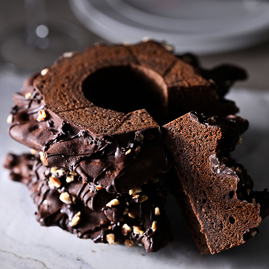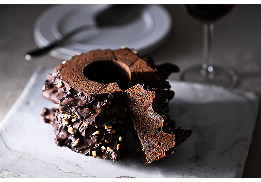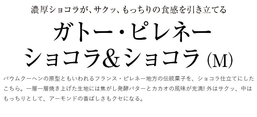 バウムクーヘンの原型ともいわれるフランス・ピレネー地方の伝統菓子を、ショコラ仕立てにしたこちら。一層一層焼き上げた生地には焦がし発酵バターとカカオの風味が充満! 外はサクッ、中はもっちりとして、アーモンドの香ばしさもクセになる。
