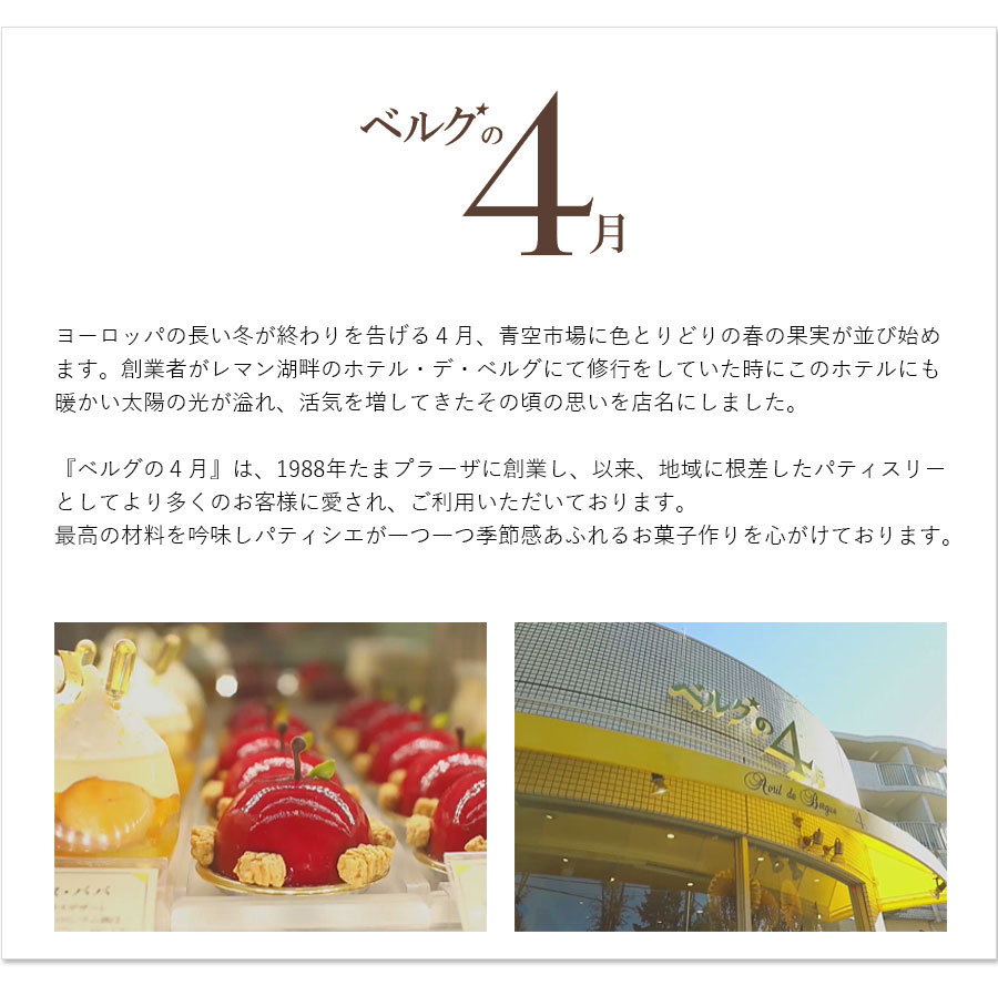 ○名称:洋菓子 ○内容量:1個(直径約13cm) ○原材料名:卵(国産)、砂糖、バター、小麦粉、ココアパウダー、アーモンドパウダー、転化糖、米でん粉、はちみつ、牛乳、チョコレートコーチング、油脂加工食品、チョコレート、カスタードパウダー、塩/トレハロース、膨張剤、乳化剤、増粘剤(加工デンプン、アルギン酸Na)、着色料(カロチノイド)、香料、(一部に小麦・卵・乳成分・アーモンド・大豆を含む) ○配送形態:常温 (宅配BOX・置配不可) ○保存方法:常温 ○賞味期限:製造日より常温30日 ○熨斗:不可 ○名入れ:不可 ○包装:不可 ○手提げ:不可 ○荷姿: ○備考: ○製造者:【ベルグ4月】 〒225-0002 神奈川県横浜市青葉区美しが丘2-19-5 <おすすめ用途> 自宅用 手土産 お年賀 母の日 父の日 お中元 敬老の日 お歳暮 バレンタイン ホワイトデー ギフト プレゼント 贈り物 贈答 お礼 お返し ご挨拶 結婚祝 出産祝 内祝い 誕生日 入学 卒業 <贈る相手> 女性 男性 友人 家族 祖母 祖父 孫