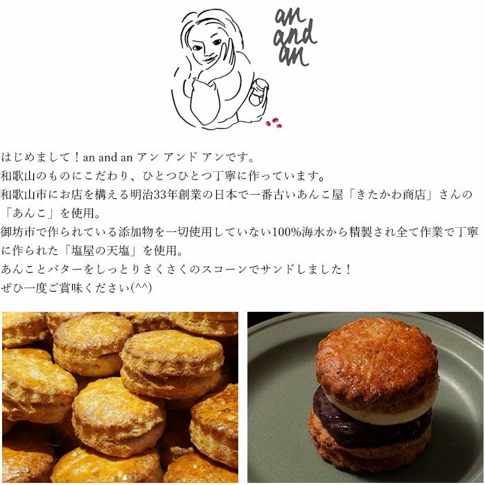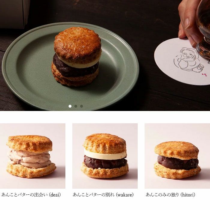 他の画像を見る あんバタースコーンサンド 餡×バターの鉄板コンビにスコーンを合わせた和洋折衷のおやつ あんバタースコーンサンド 販売価格 ¥ 4,180 税込 餡とバターは鉄板コンビ。そこにスコーンを合わせた和洋折衷のおやつ。ほろりとした生地、北海道産小豆を使ったつぶ餡のおいしさはもちろん、和歌山の海水で作られた天然塩の塩気により、重すぎないバランスの良さが魅力。まろやかなバタークリームタイプ、迫力の4層仕立て、餡のみの3種をセットに。 詳細を見る お気に入りに登録する
