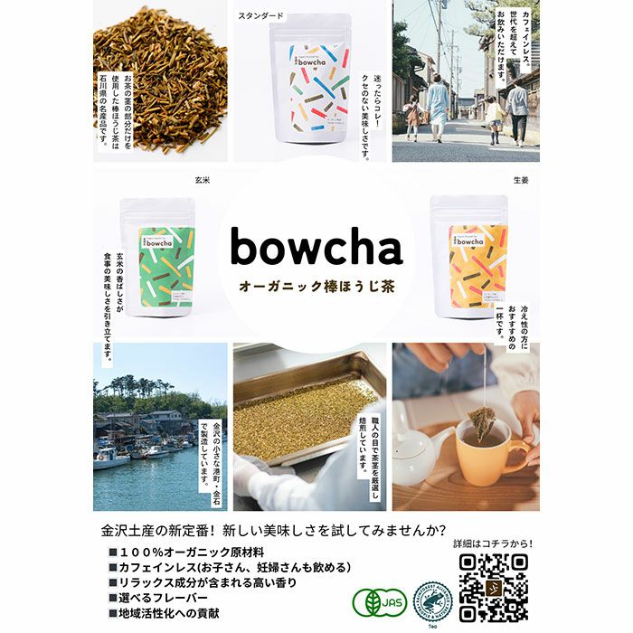 他の画像を見る 金棒茶(bowcha) ティーバッグ20個入り3種セット 石川県内で唯一のオーガニック原材料を使用した棒ほうじ茶 金棒茶(bowcha) ティーバッグ20個入り3種セット 販売価格 ¥ 4,910 税込 「金棒茶-bowcha-」は、石川県内で唯一のオーガニック原材料を使用した棒ほうじ茶です。抹茶の原料となる碾茶の茎のみを使用したことで、香り高く苦みの少ない、甘くて優しい味わいとなっています。厳選された茶茎と独自の焙煎方法によって、一般的なほうじ茶や棒茶よりも鼻に抜ける香り成分が豊富になっており、カフェインは少なめです。そのため、リラックスタイムにもおすすめで、子供や妊婦さんにも安心してお飲みいただけるお茶となっています。日常使いしやすいジッパー付き袋。幅広い世代の方に親しんでもらえるような、ポップなデザインを採用しています。 詳細を見る お気に入りに登録する