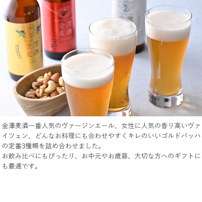 他の画像を見る 金澤麦酒 ボトル缶(定番3種) 6本セット 定番商品である金澤麦酒3種類が詰まったボトル缶セット 金澤麦酒 ボトル缶(定番3種) 6本セット 販売価格 ¥ 5,800 税込 金澤麦酒一番人気のヴァージンエール、女性に人気の香り高いヴァイツェン、どんなお料理にも合わせやすくキレのいいゴルドバッハの定番3種類を詰め合わせました。飲み比べにもぴったり、お中元やお歳暮、大切な方へのギフトにも最適です。 【お酒は20歳になってから。飲酒運転は法律で禁止されています。お酒は楽しく適量を。妊娠中や授乳期の飲酒はお控えください。】 詳細を見る お気に入りに登録する