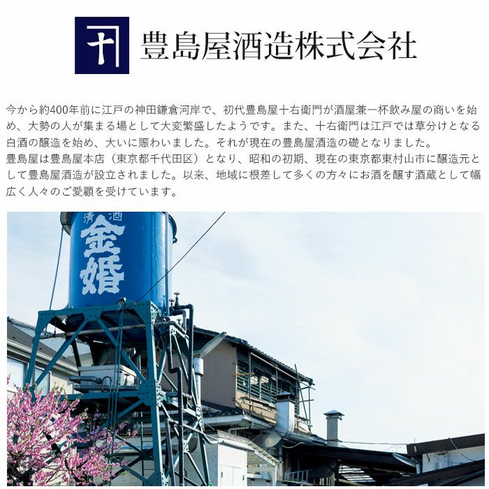 他の画像を見る 【豊島屋本店】金婚 純米無濾過原酒 十右衛門 味わい深い飲み口のやや辛口純米酒 【豊島屋本店】金婚 純米無濾過原酒 十右衛門 販売価格 ¥ 3,400 税込 弊社創業者である十右衛門の名を冠した、こだわりの純米酒です。香りを抑え、味わい深い飲み口のやや辛口の食中酒。プロにも高く評価されたその口当たりは、肉・魚・鍋等、多彩な料理との相性がよく、冷や・ぬる燗いずれも美味しく頂ける逸品。アメリカを始めとする諸外国への輸出も進めており、海外でも好評なお酒です。 詳細を見る お気に入りに登録する