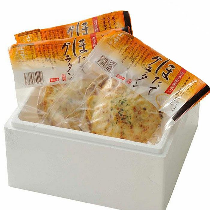 他の画像を見る ほたてグラタン(3個入) 新鮮ホタテの甘さ濃厚!海の幸グラタン ほたてグラタン(3個入) 販売価格 ¥ 4,930 税込 三陸の海で育った新鮮なホタテを使用。殻を器代わりにし、貝柱をぎっしりと詰めて香り豊かなグラタンに仕立てた。滑らかなホワイトソースとチーズの香りの中にホタテの甘さが広がる、至福の味わいだ。 詳細を見る お気に入りに登録する