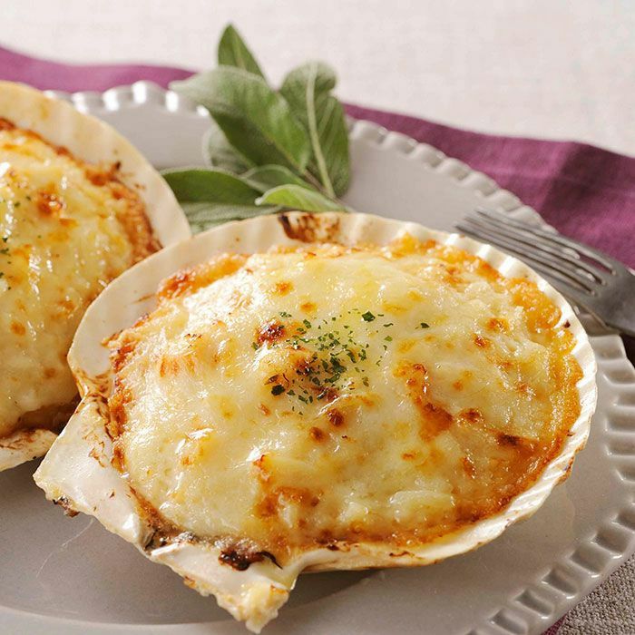 他の画像を見る ほたてグラタン(8個入) 新鮮ホタテの甘さ濃厚!海の幸グラタン ほたてグラタン(8個入) 販売価格 ¥ 10,700 税込 三陸の海で育った新鮮なホタテを使用。殻を器代わりにし、貝柱をぎっしりと詰めて香り豊かなグラタンに仕立てた。滑らかなホワイトソースとチーズの香りの中にホタテの甘さが広がる、至福の味わいだ。 詳細を見る お気に入りに登録する