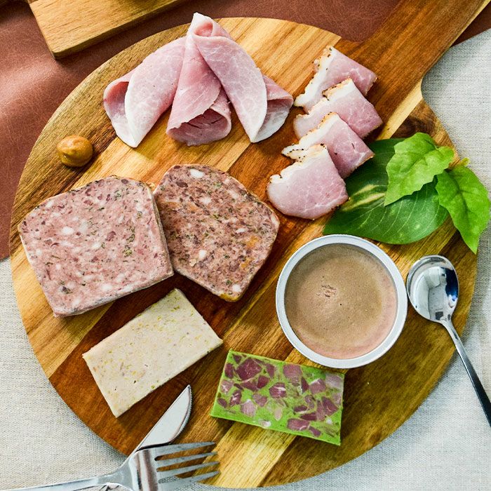 他の画像を見る ミートデリニクラウス シャルキュトリーセット パテ、テリーヌ、金時豚ハム! 究極のシャルキュトリー ミートデリニクラウス シャルキュトリーセット 販売価格 ¥ 7,610 税込 Nicklaus’のパテ、テリーヌが全て入った贅沢なセットに、こだわりの金時豚のハムを2種類入れた盛り合わせセットです。 詳細を見る お気に入りに登録する