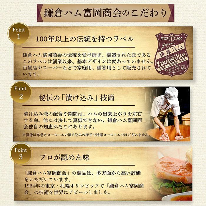 他の画像を見る 富岡の焼豚2本詰め 赤味噌と隠し味のウイスキーが奏でる芳醇な味わい 鎌倉ハム富岡商会・富岡の焼豚2本詰め 販売価格 ¥ 6,480 税込 さすが創業120余年の老舗の仕事! と唸らずにはいられない。豚バラ肉を、赤味噌ベースのタレに漬け込み焼き上げていて、ほんのり甘くしっとり柔らか。加えて、ウイスキーを隠し味にした芳醇なコクと上品な旨みの調和がたまらない。酒のアテにしたい焼豚だ。 詳細を見る お気に入りに登録する