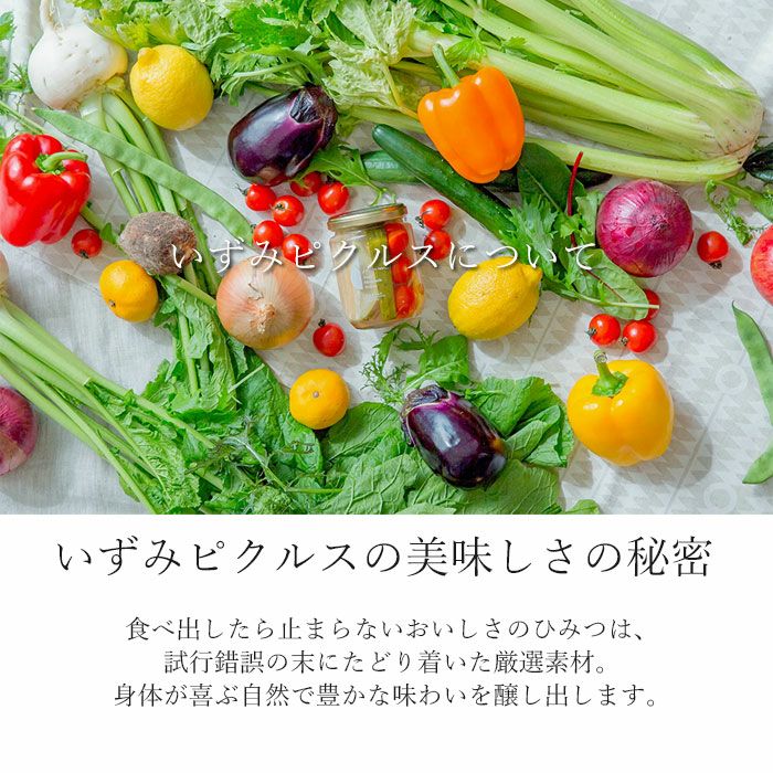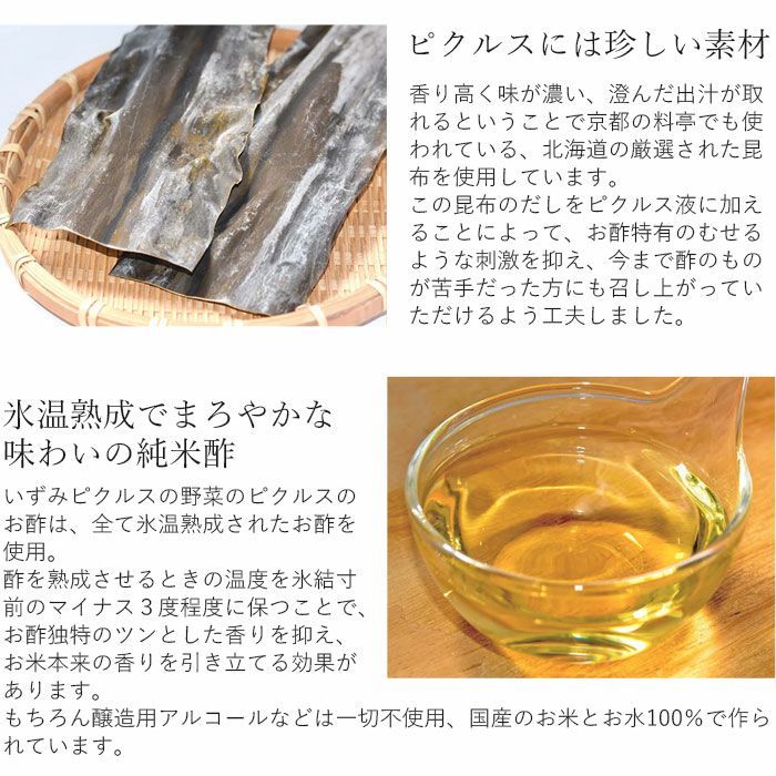 他の画像を見る ピクルスセット 大阪・泉州野菜のイキイキとした旨みと食感に心躍る ピクルスセット 販売価格 ¥ 3,800 税込 大阪の泉州野菜を中心に使い、氷温酢など厳選素材で軽やかな風味に仕上げている。昆布ダシの旨みが寄り添うみずみずしい水なす、レモン風味の酸味が心地いいパプリカ、焼き野菜のマリネ風の3種をセットに。口中に広がる素材の旨みと歯応えに心躍る! 詳細を見る お気に入りに登録する