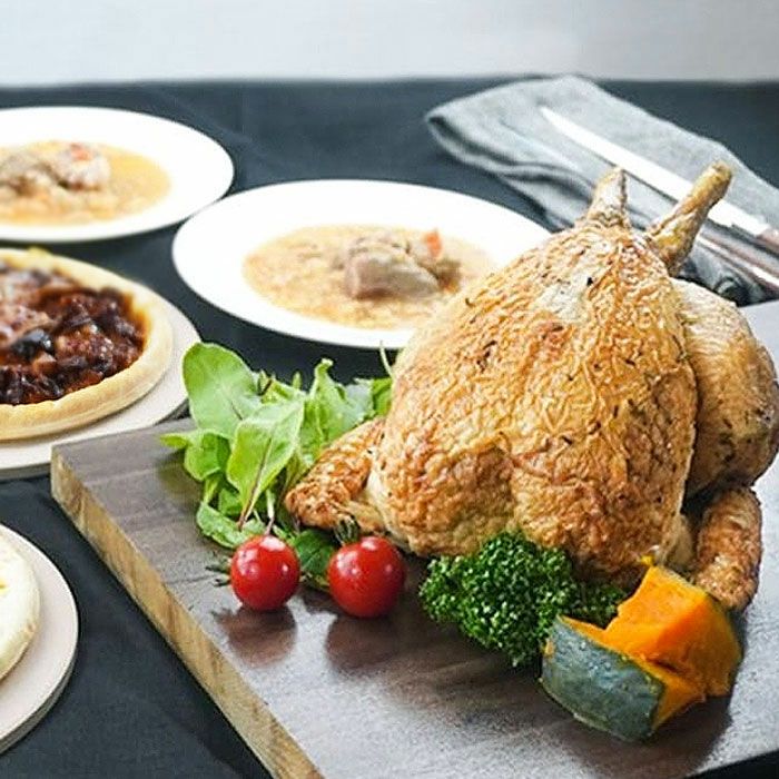 他の画像を見る ローストチキンとバラエティセット パーティーにふさわしい丸鶏のローストチキンとグルメセット ローストチキンとバラエティセット 販売価格 ¥ 10,800 税込 メインには丸鶏1羽をダイナミックに焼き上げたローストチキンに、ハンバーグ王子監修のきのこの食感と後味魅かれる甘いソースがマッチしたきのこデミグラスソースのハンバーグピザ、料理研究家 新田増穂氏監修のやさしい味わいに仕上げた豚肩ロースのあっさりカスレを詰め合わせました。 詳細を見る お気に入りに登録する