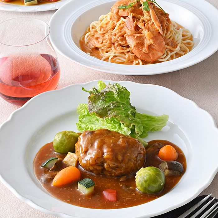 他の画像を見る 熊野牛ハンバーグ&海老のパスタセット 白浜で愛される人気店の味でお家ビストロ 熊野牛ハンバーグ&海老のパスタセット 販売価格 ¥ 4,980 税込 南紀白浜のステーキダイニングのシェフが監修。ハンバーグは和歌山熊野牛を100%使った肉々しい味わい。シチューソースと地元柚子を用いたポン酢ソースの2種で楽しめる。パスタもエビダシがしかと感じられる本格派。どちらも手が込んでいて、まさにレストランクオリティだ。 詳細を見る お気に入りに登録する