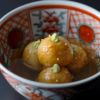 京都に古くから伝わる京料理の一つ「鴨まんじゅう」。国産合鴨肉に山椒で香りつけたそぼろを里芋の生地で包み揚げました。出汁の効いたやさしい味が口に広がるとろりとした餡とかりっと揚げたぶぶあられ。お好みでわさびをつけて。職人が味と食感にこだわり趣向を凝らしてお作りしました。個包装ですので、食べたいときに食べたい分を湯煎するだけでお召し上がりいただけます。ご自宅用にはもちろん、贈答用としてもお喜びいただける逸品です。ぜひご賞味ください。