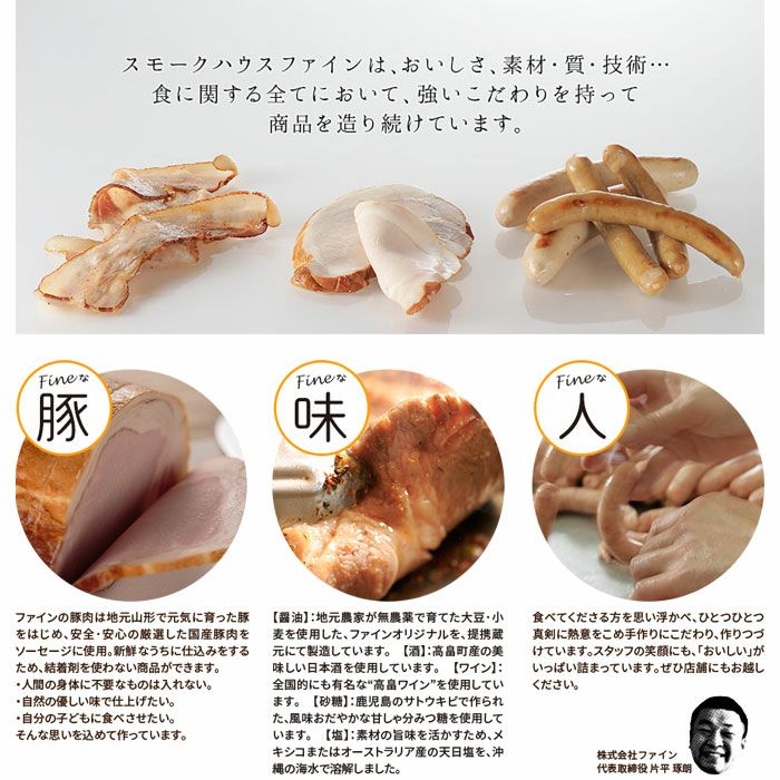 他の画像を見る 東北ハムの無添加ハム・ソーセージセット 発色剤・保存料などの食品添加物を使わない 東北ハムの無添加ハム・ソーセージセット 販売価格 ¥ 4,880 税込 厳選した山形産食材として、庄内産SPF豚に山葡萄ワイン、県産米「はえぬき」などを使用。伝統の製法にのっとって手間ひま惜しむことなく、「安全で安心な本物の味」を実現しています。 詳細を見る お気に入りに登録する