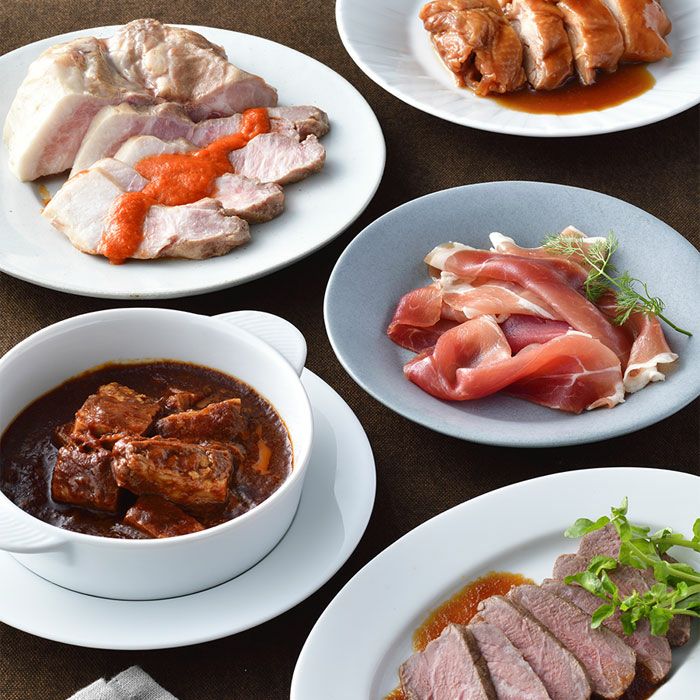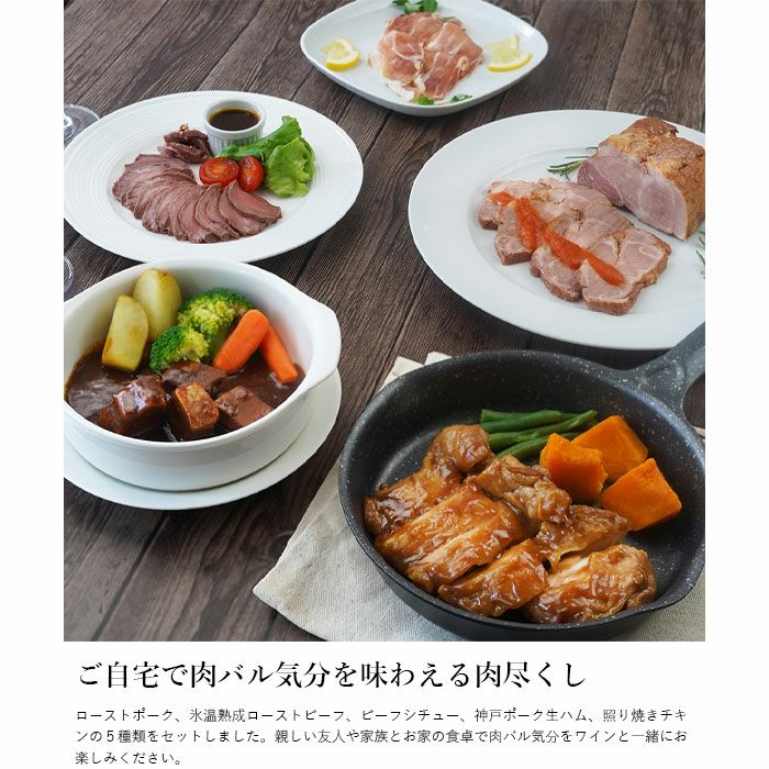 他の画像を見る お肉de家バルセット 自宅で肉バル気分を味わえる肉尽くし お肉de家バルセット 販売価格 ¥ 5,780 税込 ローストポーク、氷温熟成ローストビーフ、ビーフシチュー、神戸ポーク生ハム、照り焼きチキンの5種類をセットしました。親しい友人や家族とお家の食卓で肉バル気分をワインと一緒にお楽しみください。 詳細を見る お気に入りに登録する