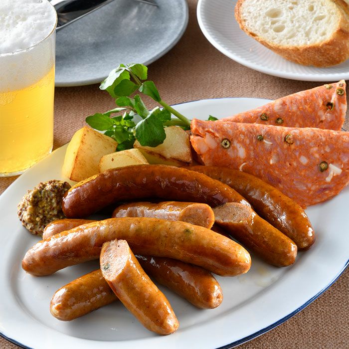 他の画像を見る ゴールドソーセージ4種セット 本場ドイツで金賞に輝いたへんじんもっこの定番商品 ゴールドソーセージ4種セット 販売価格 ¥ 5,090 税込 佐渡島の工房でドイツ製法により手作り。豚肉100%で粗挽きの白い焼きソーセージは弾ける皮と恍惚的な旨みが格別。コクのある粗挽きスモーク、チョリソー、焼くと燻香が増すディベリッツイーナの計4種を食べ比べできる。 詳細を見る お気に入りに登録する