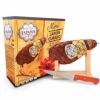 「レストランで見かける骨付き生ハムを家でも食べたい。けど大きすぎて…」。そんなお客様の声に応えて、使いやすいコンパクトサイズの生ハムをご用意しました。気軽にお楽しみいただけるよう、専用台とナイフをセットにしたギフトBOXです。 約950gのかたまりは迫力満点! ホームパーティーが盛り上がること間違いなし!生ハムは熟成期間12か月以上の高品質なスペイン産。ワインのお供はもちろん、サラダに盛り付けたりと必要な分だけスライスして切りたてをお楽しみいただけます。