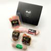 宮崎県のブランド豚である「米寿豚」を95年間続くヤギシタ伝統の秘伝の塩漬液に漬け込み、14日間熟成させて桜のチップで約8時間じっくり燻煙して作る生ハム、厳重な衛生管理体制と広大な草原の牧場でストレスなく育つ赤身の多いデンマークのブランド豚である「ダニッシュ・クラウン・ポーク」で作る肉の食感がしっとり柔らかい肩ロースの部位のヤキブタ、香辛料のブラックペッパーをかけてスモークしたパストラミポーク、ほんのりと脂身が甘い豚バラ肉を使ってスモークしたベーコンブロック、パセリとブラックペッパーの絶妙な配合で作るハーブローフ(ボロニアソーセージ)。どれもお酒のつまみやお惣菜としてぴったりな、オリジナルギフトセットです。