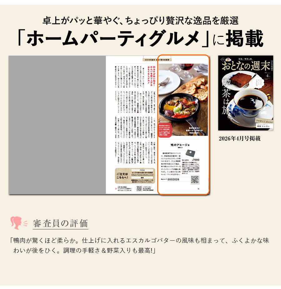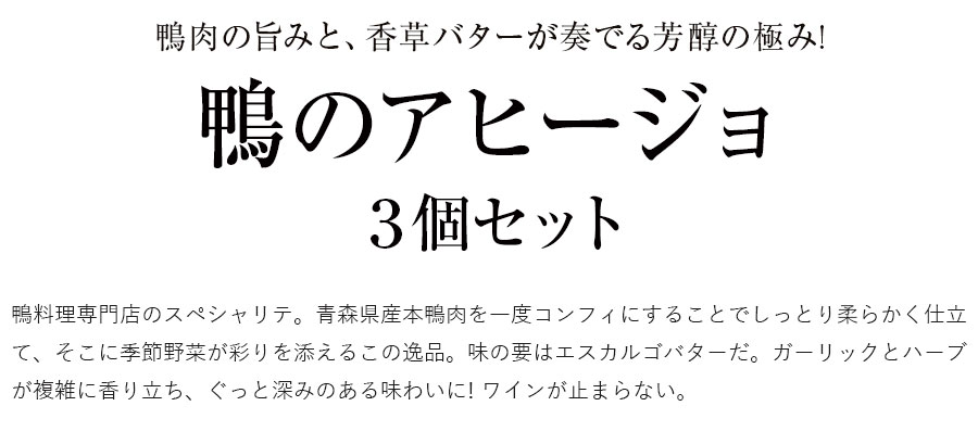 鴨肉の旨みと、香草バターが奏でる芳醇の極み! 鴨のアヒージョ3個セット