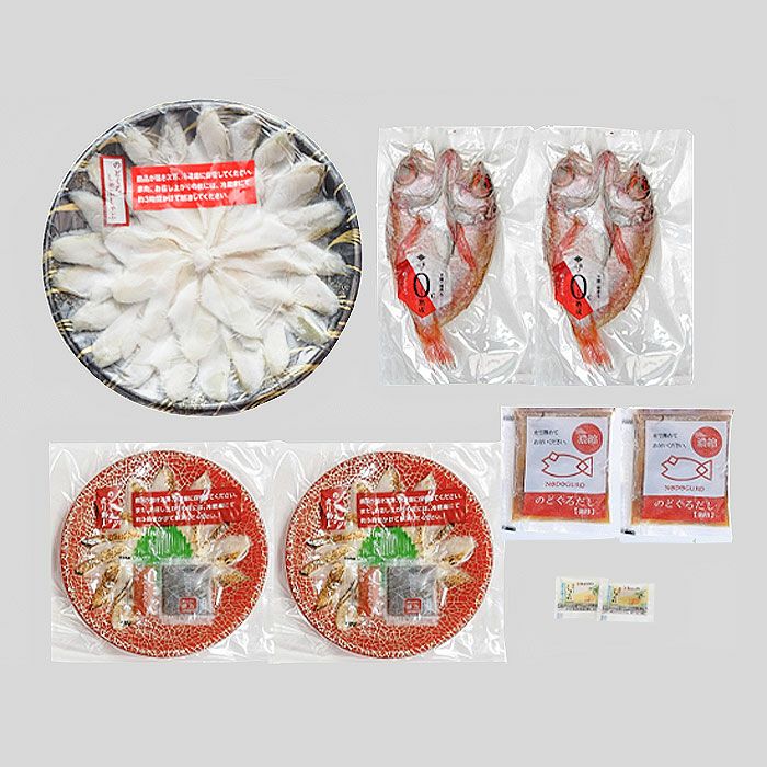 他の画像を見る のどぐろ満彩セット 旨みが溢れる、のどぐろ尽くしの贅沢鍋セット のどぐろ満彩セット 販売価格 ¥ 13,280 税込 のどぐろのしゃぶしゃぶと炙り刺し、開き干し、だしまでのどぐろから抽出した豪華セットです。炙ることでさらに旨みが増したお刺身は、お茶漬けでもお楽しみいただけます。とろけるような食感のしゃぶしゃぶは、旨みがたっぷり溶けだした鍋で〆の雑炊もお楽しみいただけます。開き干しはこだわりの塩を使い、水分を適度に残すために約0℃の冷風で干しているのでふっくらジューシーに仕上げております。 詳細を見る お気に入りに登録する