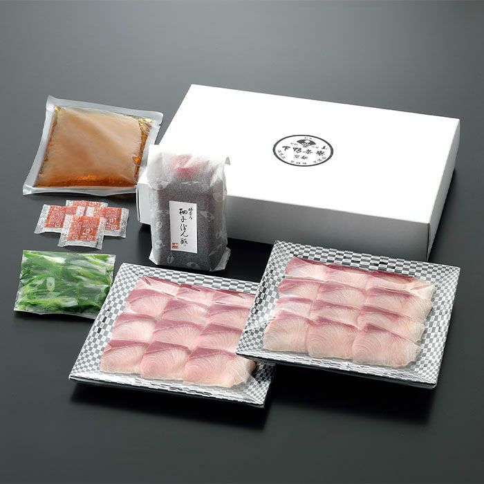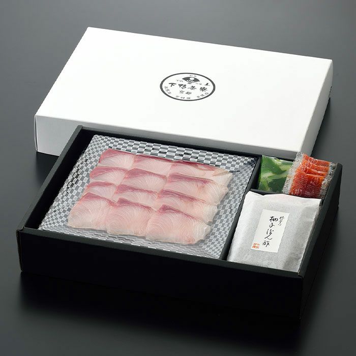 他の画像を見る トラフグ三昧セット 刺身からヒレ酒まで、トラフグ尽くしのフルコース トラフグ三昧セット 販売価格 ¥ 12,810 税込 国産養殖トラフグのお刺身と皮刺し、ちりセットのフルコ-スです。ヒレもお付けしておりますので、ヒレ酒まで楽しめます。料亭で味わう職人の技術と「ふぐの王様」トラフグの味をぜひご家庭でご堪能ください。 繊細で上品な味わいのトラフグ刺身は、弾力のある身の締まりとほのかな甘みが特徴。口に含むと豊かな旨味が広がり、まさに「ふぐの王様」にふさわしい逸品です。皮刺しはコリコリとした独特の食感が楽しめ、脂ののった旨みと爽やかな風味が絶妙なバランスを生み出します。ちり鍋用のトラフグは、ぷりっとした身が鍋の熱でほろりとほぐれ、優しい出汁とともに味わうことで深い旨味が染み渡ります。添付のポン酢は、ゆず果汁や日向夏みかんの爽やかな酸味と昆布・かつお節の豊かな風味が調和し、ふぐの繊細な味を引き立てます。もみじおろしのピリッとした辛みがアクセントとなり、味にキレを加えています。さらに、トラフグの干しひれ付きなので、ご家庭で本格的なヒレ酒もお楽しみいただけます。 詳細を見る お気に入りに登録する