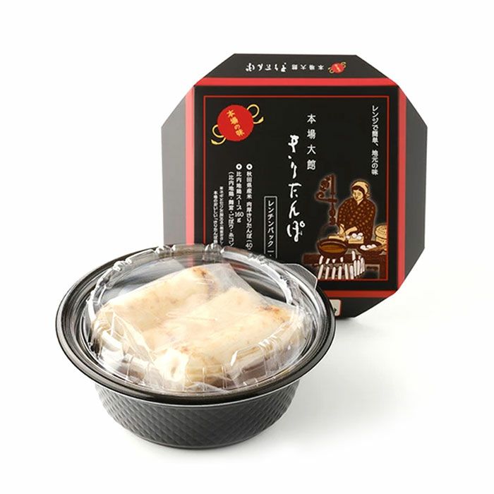 他の画像を見る 本場大館きりたんぽ レンチンパック1人前(2個セット) レンジで簡単本格派!比内地鶏きりたんぽ 本場大館きりたんぽ レンチンパック1人前(2個セット) 販売価格 ¥ 4,290 税込 販売期間 2025/11/11 0:00 〜 2026/03/31 23:59 きりたんぽ鍋の本場の味を全国の皆様に気軽に味わっていただきたいとの思いで開発した新商品です。賞味期限は常温で1年ですので、ご家庭で召し上がることはもちろん、高級感のあるデザインによりお土産やご贈答にも最適な商品です。商品の特徴として、比内地鶏のガラを100%使用した弊社人気のきりたんぽ専用だし「郷味」をベースに、比内地鶏肉、舞茸、ごぼう、糸こんを入れたスープと、秋田県産米から作った香ばしい肉厚きりたんぽをセットにしました。また、手に持って召し上がることを想定し、レンジで加熱しても熱くならない器の素材を厳選するなど、細部にまでこだわった逸品です。 詳細を見る お気に入りに登録する
