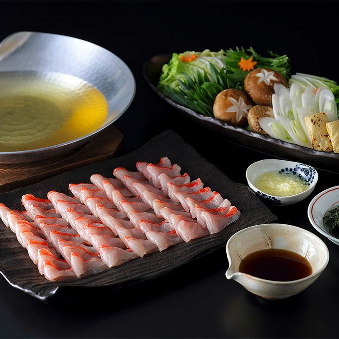 他の画像を見る 【下鴨茶寮】金目鯛の出汁しゃぶ(2~3人前) 金目鯛の旨みがとろける、贅沢な出汁しゃぶ 【下鴨茶寮】金目鯛の出汁しゃぶ(2~3人前) 販売価格 ¥ 16,700 税込 脂がのった国産の金目鯛を出汁にくぐらせれば、とろけるような甘みに。そこに、風味豊かなあおさが絡む口福。仕上げに葱油を添えて、柚子香るぽん酢で爽やかにいただけます。香りと旨みが重なる贅沢出汁しゃぶをお愉しみください。 詳細を見る お気に入りに登録する
