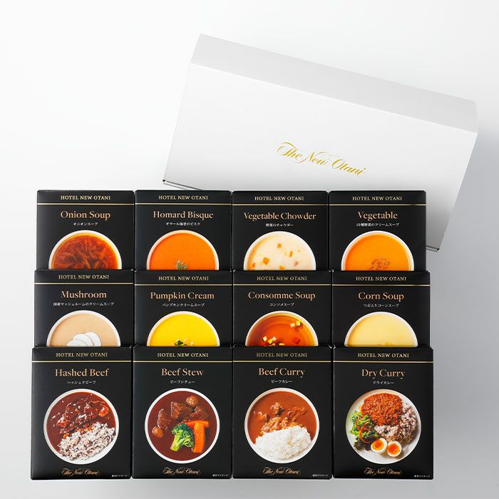 他の画像を見る ホテルニューオータニ監修 レトルトスープ・惣菜セット(12個入) こだわり素材とシェフの技、ホテル仕込み極上セット ホテルニューオータニ レトルトスープ・惣菜セット(12個入) 販売価格 ¥ 12,290 税込 ホテルニューオータニシェフ監修のスープセットは、選び抜かれた素材の旨みを最大限に引き出し、丁寧な仕込みで仕上げられています。つぶ入りコーンスープはとうもろこしの粒感とクリーミーさが特徴で、10種野菜のクリームスープは多彩な野菜の甘みとトマトの深みが調和。パンプキンクリームスープはかぼちゃの濃厚な味わい、野菜のチャウダーは豚肉の旨みが加わったコク深い一品です。オニオンスープは牛肉や鶏がらの旨みと香ばしいソテーオニオンが味わいを深め、マッシュルームのクリームスープは上品な風味が魅力。オマール海老のビスクは濃厚な海老の旨みとトマトの酸味が絶妙です。コンソメスープは牛肉や鶏肉の旨みを生かし、ドライカレーやビーフカレーは香辛料と素材の味が際立ちます。ビーフシチューやハッシュドビーフはワインやトマトのコクが豊かに広がり、洗練された味わいが楽しめる逸品です。 詳細を見る お気に入りに登録する