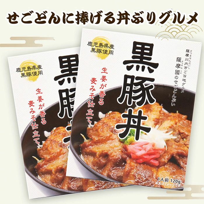 他の画像を見る せごどんぶい 黒豚丼×2箱 西郷どんも唸る!黒豚と麦みそのさっぱり生姜黒豚丼 せごどんぶい 黒豚丼×2箱 販売価格 ¥ 3,200 税込 鹿児島県産の黒豚と麦みそを使用し、薩摩川内市で製造しました。隠し味に生姜をきかせ、さっぱりとした黒豚丼に仕上げました。こだわりの黒豚丼をご堪能いただけます。薩摩川内市ご当地グルメ「せごどんぶい」とは、豚肉が大好きで、味噌作りが得意だった西郷隆盛(せごどん)に食べてほしい、そんな想いで生まれたのが「せごどんぶい」です。薩摩川内市では、様々な「せごどんぶい」を食べることができます。 詳細を見る お気に入りに登録する