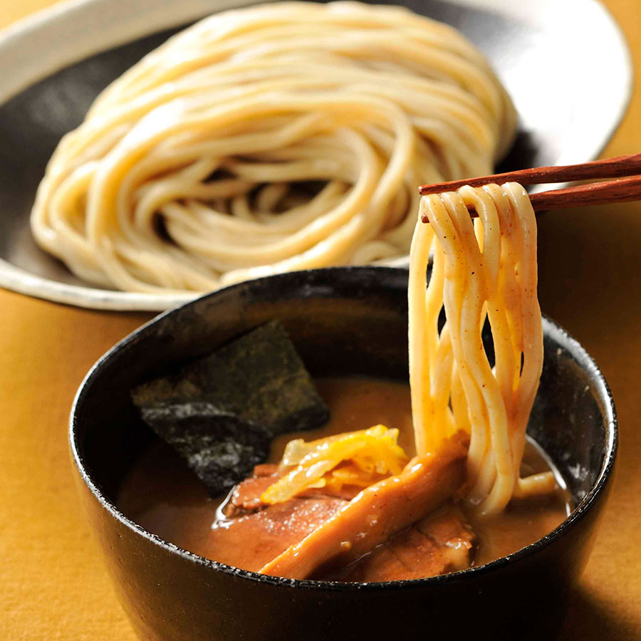 千葉県松戸市の有名店「中華蕎麦とみ田」の店で出している「つけめん」のスープ、麺、メンマ、チャーシュー、柚子をそのまま冷凍したセット。濃厚なのに飽きのこない豚骨魚介味のスープは、奥深い旨み。自家製の麺はモチッとしたコシが特徴だ。【講談社TRYラーメンオブザイヤーつけ麺部門8年連続最優秀賞、大つけ麺博2016最優秀賞】
